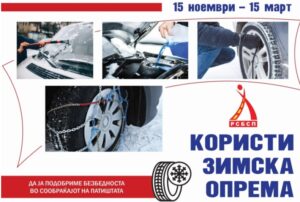 Во рамки на кампањата „Користи зимска опрема“, РСБСП ги потсетува возачите на моторни возила на законската обврска за поседување на зимска опрема во возилото (независно на тоа дали се вклучени во сообраќајот во населено место или надвор од населено место) од 15 ноември оваа година до 15 март следната година.