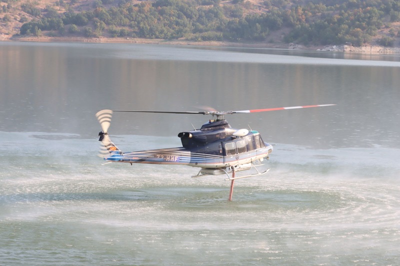 Хеликоптерот Бел-412 дејствуваше на пожарите на врвот Лисец, помеѓу селата Г. Јаболчиште и Дреново, и на планината Серта, село Калањево.