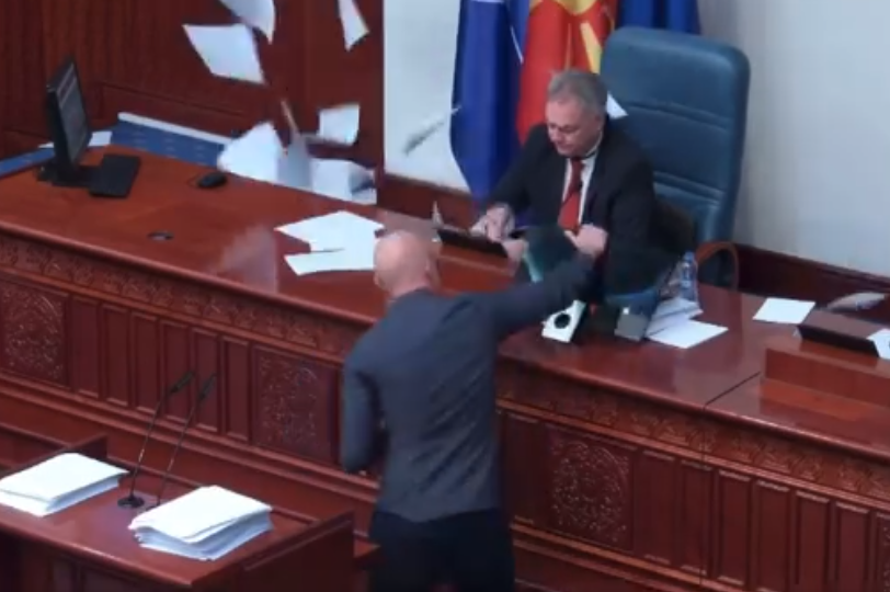 Претходно, пред инцидентот, Димитар Апасиев побара да се тргне првата точка од дневен ред односно предлог деловникот. Против овој предлог гласаа 82 пратеници и истиот не беше усвоен.