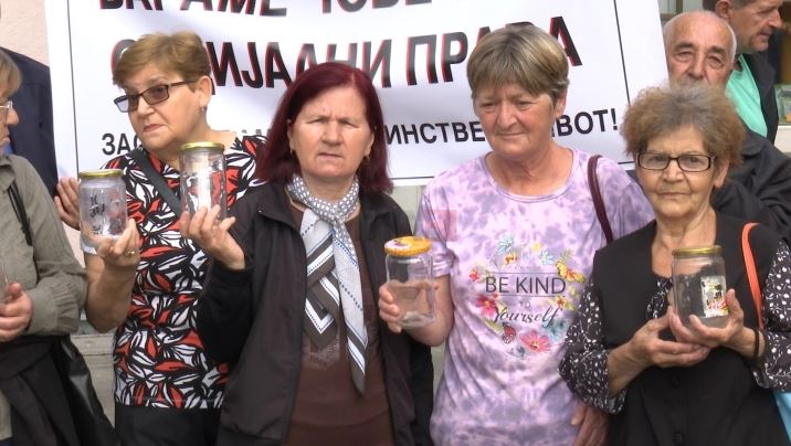 „Ова ли е едно општество за сите кога во рацете држиме празни тегли? А зошто? Затоа што со покачувањето од 5,3 отсто на пензиите не можевме да направиме зимница. Госпоѓо Тренчевска по допрен глас слушаме дека ќе имаме зимска помош. Можеби, се однесува на некое новогодишно пакетче кое ќе содржи шал, ракавици и капичка. Ние сме децидни, ви бараме линеарно зголемување од 5.000 денари и минимална пензија од 18.000 денари“, вели Арсовска.