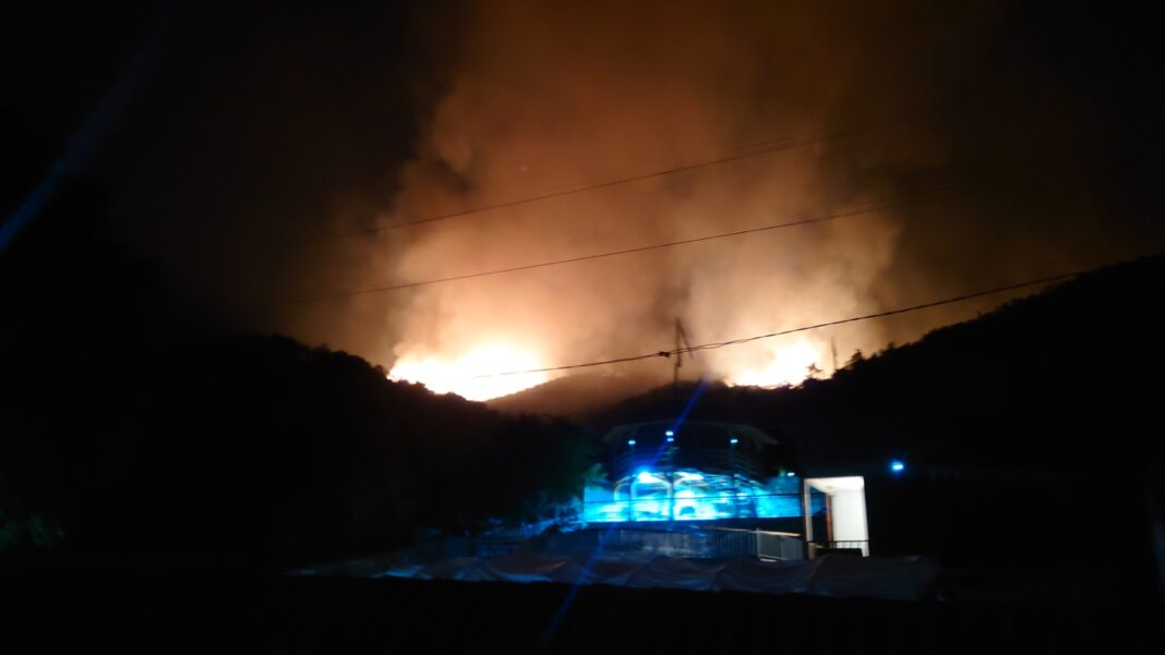Огнената стихија, како што информираат од терен, во моментот е стивната, но поради отежнатите ноќни услови и ветрот екипите ќе останат да дежураат во текот на ноќта.