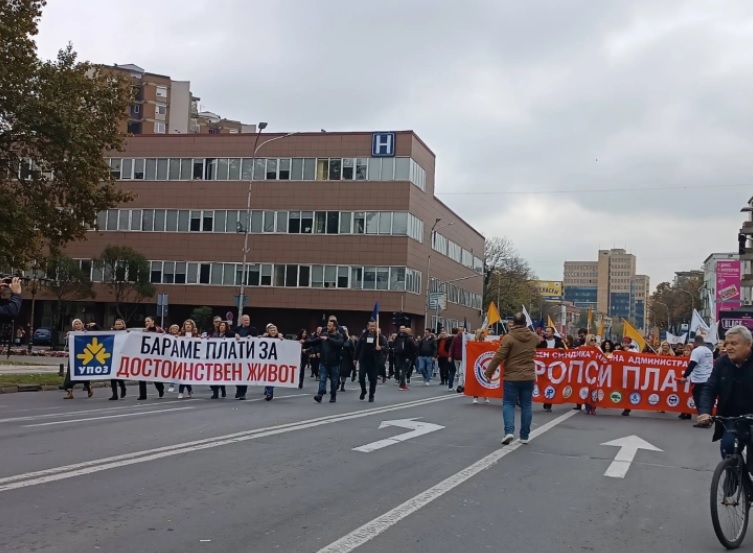 Протестот, на кој поддршка дадоа повеќе административни службеници од повеќе синдикати, од пред Собранието,продолжи пред Министерството за правда и заврши пред Владата.