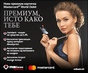 Бидете дел од клубот на привилегираните. Вистинските избори се карактеристика на добрите деловни луѓе. Да се поседува Mastercard World Debit од динамична и модерна банка како што е УНИБанка АД Скопје, е повеќе од оправдана одлука, но и истовремено награда за се она што досега сте го пoстигнале.