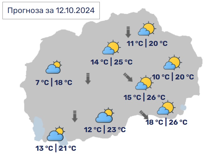 Дневните температури ќе се движат од 16 до 25 Целзиусови степени.