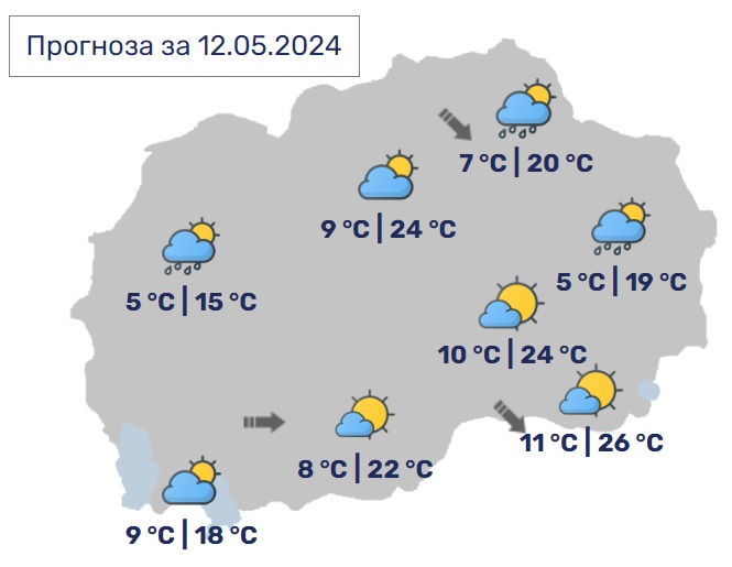 Дневните температури ќе се движат од 16 до 25 Целзиусови степени.