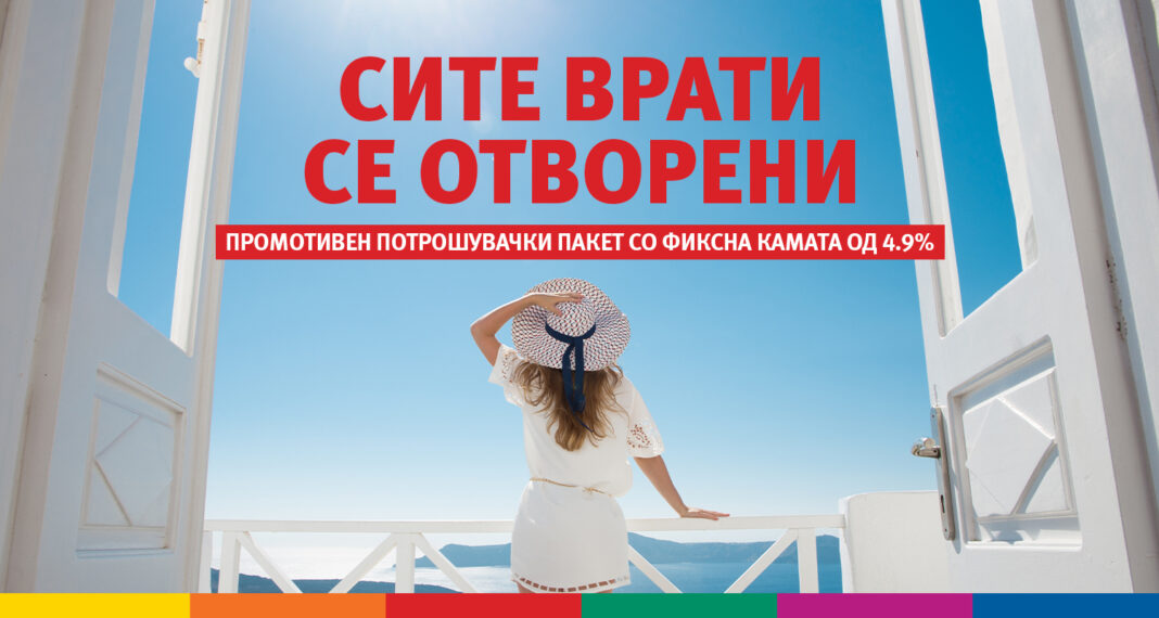 Промотивниот потрошувачки пакет вклучува потрошувачки кредит со фиксна каматна стапка од 4,9% за целиот период на отплата до 95 месеци, кредитна картичка и дозволено пречекорување.