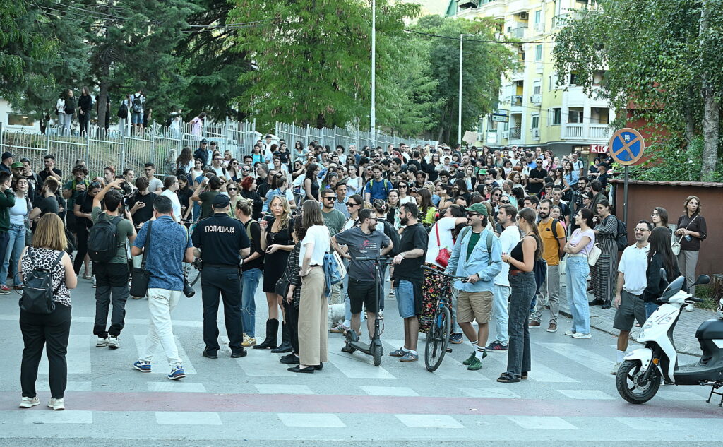 Протестот продолжи кај паркот „Жена борец“ во Скопје.