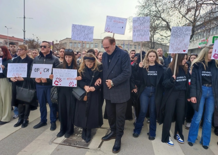 „Ние за Фросина бараме правда, не само од убиецот, бараме правда и од таткото. Бараме да се затвори таткото, да одговара таткото, Зоран Јованов и судијката Даниела Алексовска Стојановска, кои не излегоа јавно да изразат сочувство кон семејството, туку кукавички се кријат и бришат профили“, изјави сестрата на загинатата девојка.