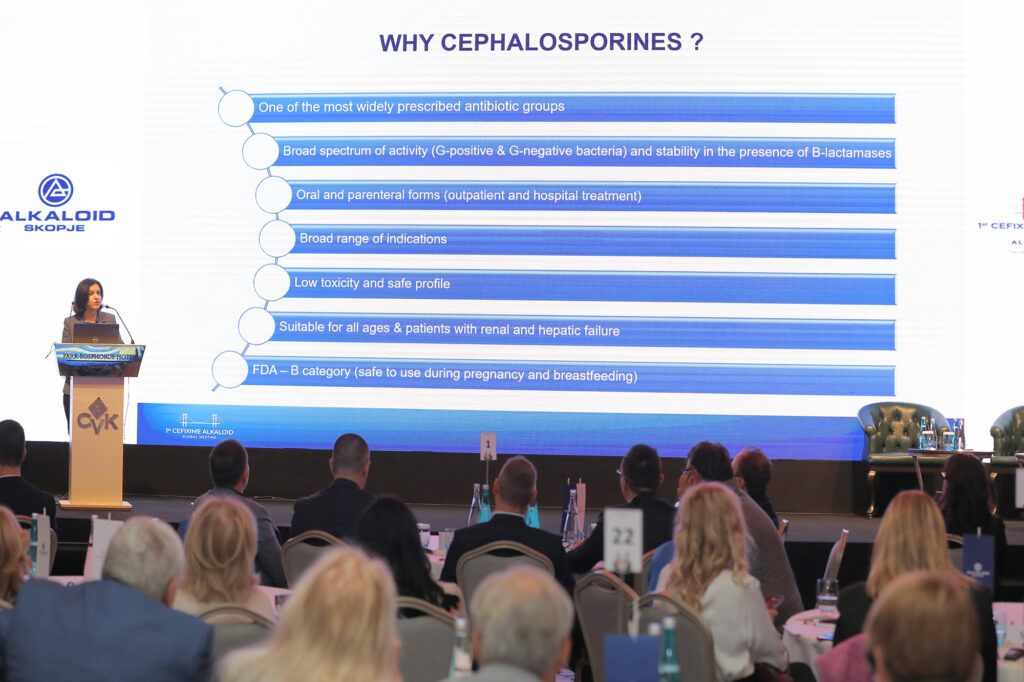 Тематскиот дел од конференцијата го отвори д-р Снежана Петровска, раководител на одделот Глобални медицински работи и безбедност на лекови при „Алкалоид“, преку презентација за успешната приказна на алкалоидовиот Цефиксим низ годините. На панел-сесијата посветена на искуствата за овој дел во македонски рамки, чиј модератор беше проф. д-р Дејан Докиќ, говореа д-р Александар Сајковски и проф. д-р Сотир Ставридис.