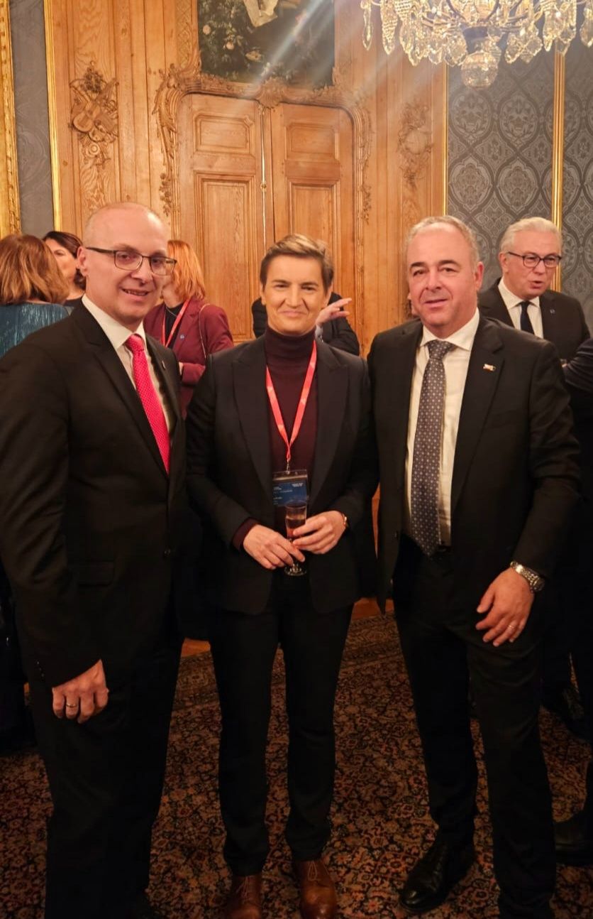 „На приемот во Стокхолм имав можност за средба со г-ѓа Ана Брнабиќ, претседателка на српската Скупштина. Одлична прилика да размениме мислење за регионалната соработка, ЕУ интеграциите, војната во Украина, како и за актуелните енергетски теми во Србија. Заедно со колегата г-н Даниел Кривец, потпретседател на Државниот збор на Словенија“, објави Милошоски.