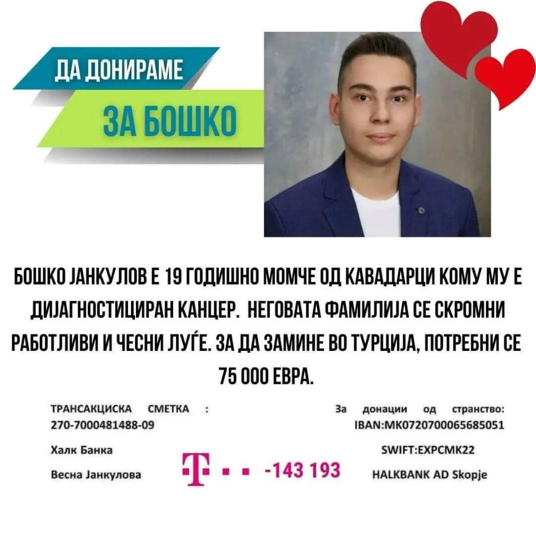 Од семејната фондација ‘Никола Јанчев’ ќе бидат одвоени финансиски средства во износ од 10 000 евра со цел да започне процесот на лекување. Во наредниот период како приватно, така и преку Општина Кавадарци, ќе се организираме да се соберат и дополнителните средства кои се потребни за понатамошно лекување.