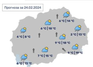 Температурите ќе се движат од 8 степени во мавровскиот крај, до 18 во Скопје и 19 степени на југоистокот од државата.