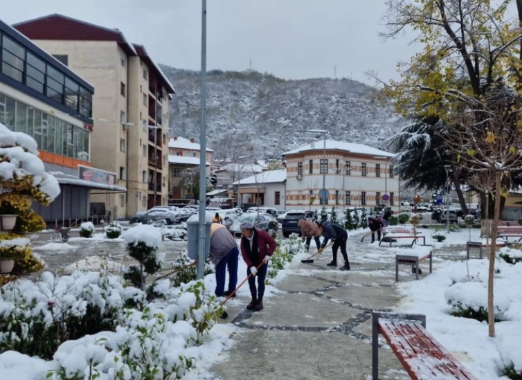 Во Крива Паланка температурата е околу пет степени под нулата, рано утрово во централното градско подрачје активно се изврши чистење на сите тротоарски површини и пешачки патеки од страна на ЈП Комуналец и вработени во казнено-поправна установа затвор Крива Паланка, кои во координација со општината се ставија во служба на граѓаните.