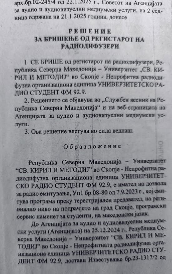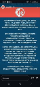 Студентите на УКИМ велат нешто сосема друго. Според нив, одлуката за затворање на радиото го донеле самите студенти на седница на Универзитетското студентско собрание. Тие самите побарале „пренамена на универзитетското радио Студент ФМ