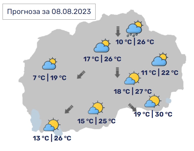 Во следните денови ќе се задржи посвежо време со ниски утрински температури. Во четврток на места ќе биде нестабилно со пороен дожд и грмежи. За време на викендот се очекува пораст на температурата