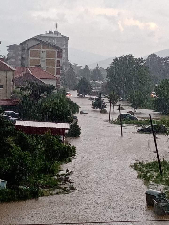 Тој информира дека се поплавени одредени улици, пропаднат е асфалтот на една од нив, а на терен се екипи на Територијалната противпожарна единица, јавното комунално претпријатие, „Македонија пат“.