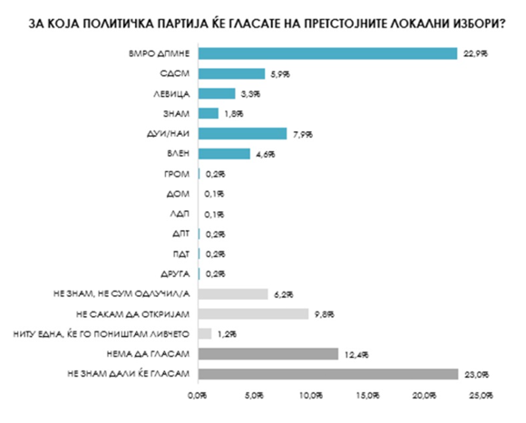 „Професорот Апасиев прави споредба на резултатите од анкетата од септември лани со резултатите на Левица остварени на изборите за кои вели дека биле ‘безмалку 7%’. Господинот би требало да знае дека на избори не излегуваат оние што рекле нема да гласаат, а кога се проектираат изборни резултати од анкета се отстрануваат и оние кои се изјасниле дека нема да гласаат за ниту една партија. Така според посочената методологија проектираниот резултат на Левица на локалните избори 2025 во анкетата на Маркет вижн е 6,9%.