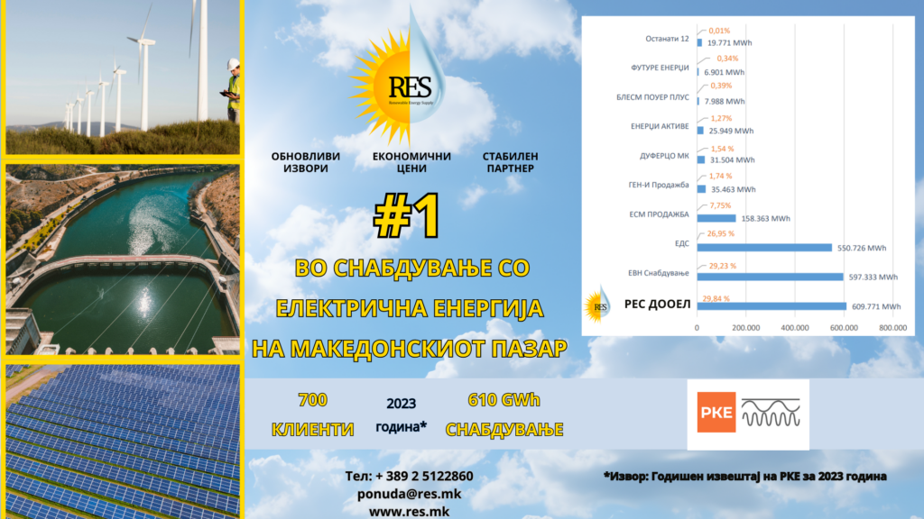 Во 2023 година РЕС продал 609.771 MWh електрична енергија, или 28,84% од вкупната енергија на слободниот пазар, додека во снабдувањето на големите субјекти држи дури 34% од пазарот.
