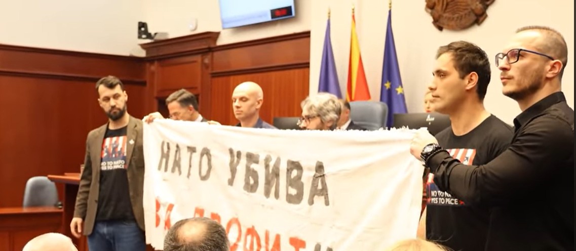 „’Топол’ пречек на Генералниот секретар на НАТО, Марк Руте, денеска во Собранието на Република Македонија, од страна на пратениците од Левица“, пишува во соопштението од Левица.