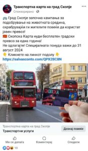 „ЈСП Скопје утврди лажна вест со која е фалсификувано логото на електронската картичка Скопска објавено на социјалните мрежи од страна на група наречена ‘Транспортна карта на град Скопје’, која не е поврзана со ЈСП Скопје.