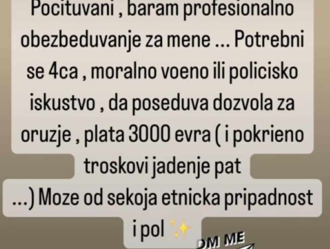 Раде Трајковски Штекли на својот Инстаграм профил објави оглас за вработување на лично обезбедување. Штекли бара четири лица, кои треба да поседуваат воено или полициско искуство, и на кои за да му го чуваат животот ќе им даде плата од 3.000 евра. Во 2021 година Штекли беше уапсен во Белград поради тогашното поврзување со убиство извршено во Македонија. За него имаше распишано и меѓународна потерница.