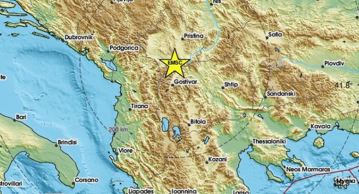 Сеизмолошката опсерваторија при Природно-математичкиот факултет во Скопје, синоќа во 22 часот и 5 минути регистрира земјотрес чиј епицентар потекнува од територијата на Косово, на околу 45 км северозападно од Скопје, со Рихтерова локална магнитуда, ML4,6.