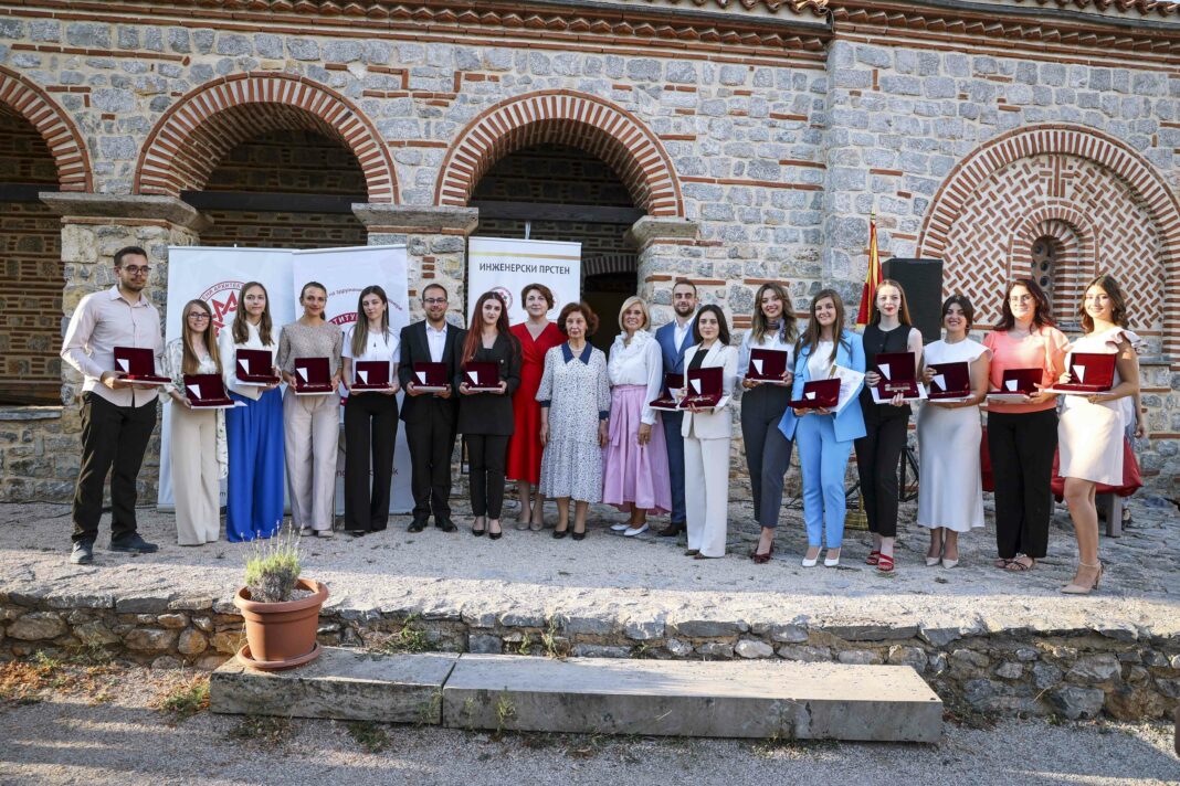 „Инженерски прстен“ се доделува по 21. пат, а годинашни добитници се 15 најуспешни дипломирани студенти од Универзитетот „Св. Кирил и Методиј“ – Скопје, од Универзитетот „Св. Климент Охридски“ – Битола, од Универзитетот „Гоце Делчев“ – Штип и од Државниот универзитет – Тетово. Од УКИМ носители на признанието се Ева Зовиќ – Архитектонски факултет, Димитрија Симјаноски – Градежен факултет, Михаела Златеска – Машински факултет, Марија Митевска – Технолошко-металуршки факултет, Егзона Муртезани – Факултет за земјоделски науки и храна, Виктор Мегленовски – Факултет за информатички науки и компјутерско инженерство, Руфија Идризовска – Природно математички факултет, Бојана Захариева – Факултет за дизајн и технологии на мебел и ентериер, Ангела Мешкова – Факултет за електротехника и информациски технологии и Матеа Ташковска – Факултет за електротехника и информациски технологии. Од УКЛО Битола, Елена Стефаноска – Технички факултет и Теодора Силјаноска – Факултет за информатички и компјутерски технологии, од УГД Штип, Матеа Анакиевска – Факултет за природни и технички науки и Даниел Цоневски – Факултет за информатика, а од ДУТ Адина Османи – Факултет за применети технички науки.
