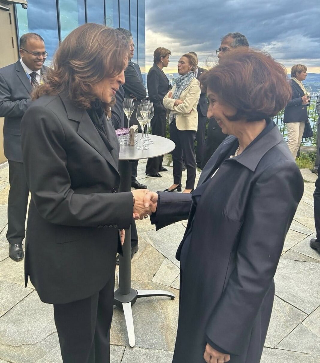 „На маргините на Самитот за мир во Украина накратко разговарав со Камила Хари, првата жена потпретседател во историјата на САД. Ѝ се заблагодарив за континуираната поддршка. Се надеваме на натамошно зајакнување на билатералните односи со САД.