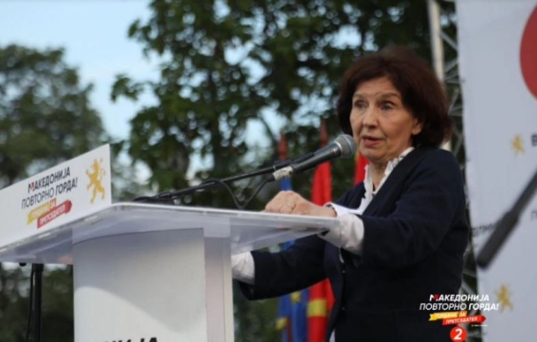 „Јас велам деновиве да не оди чекор, чекор да не пушти надвор без во Собранието да постигне консензус за нашите државни и национални интереси од кои никој нема право да отстапува, бидејќи не ја наследил никој Македонија од дедо му или од прадедо му, туку од предците и мора да им ја остави на потомците како пристојна држава во која можеби некој од која заминал ама ќе сака да се врати затоа што тука убаво се живее, истакна таа.