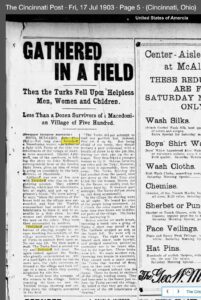 Дописникот на Синсинати пост објавува дека за време на акцијата на 3 мај 1903 година Турците го опколиле селото селото Баница, а селаните ги построиле близу селото на една полјана.
