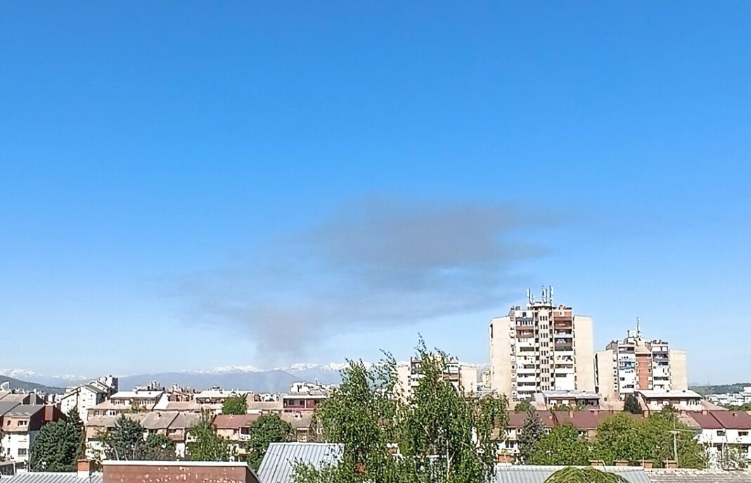 Во моментов чадот од пожарот во Универзална сала се гледа и од далеку. Фотографијата е направена од стан во Ново Лисиче, на бул. Февруарски поход.