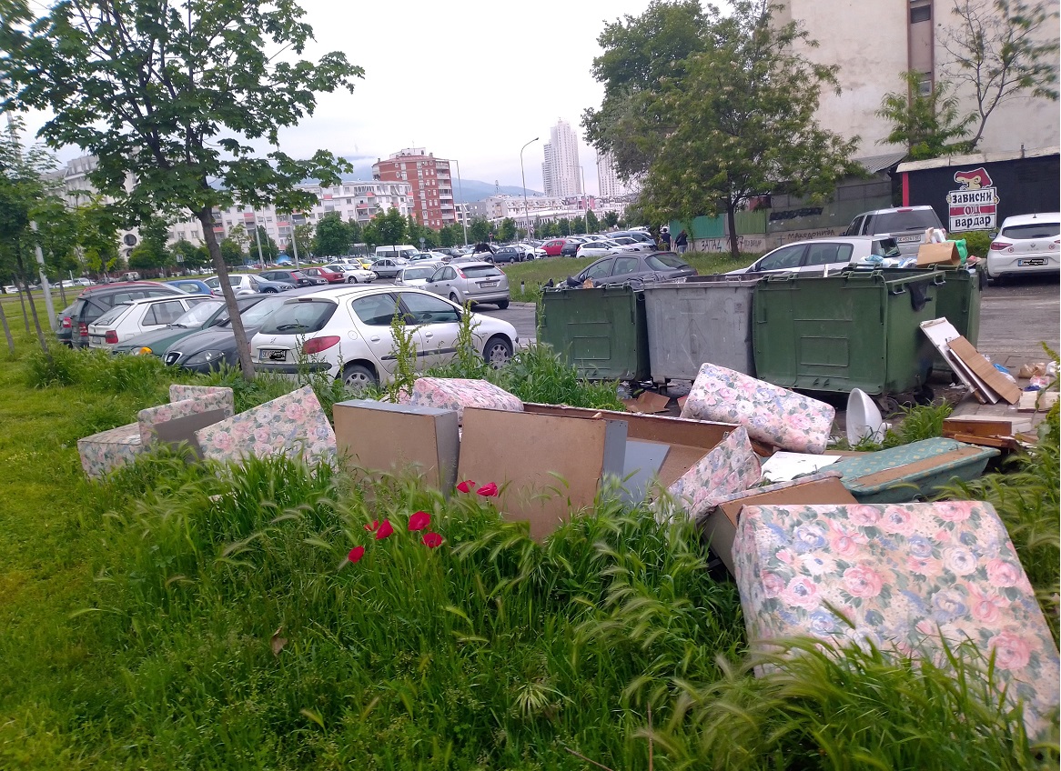 И така, старата гарнитура која добро издржала тегнење по неа, гледање телевизија и седенки со гости, наместо да се однесе на место каде се остава кабаст отпад, е изложена крај контејнерите за кој сака да си ја земе.