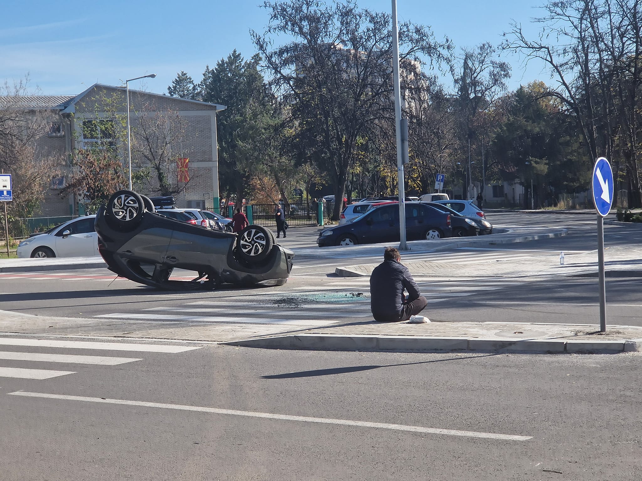 Како што претходно објавивме, автомобил се преврте на новата крстосница пред воениот базен, во близина на oсновното училиште Љубен Лапе во населбата Аеродром. Фотографии од сообраќајката се објавени на социјалните мрежи, а од Министерството за внатрешни работи велат дека повредена е жена.