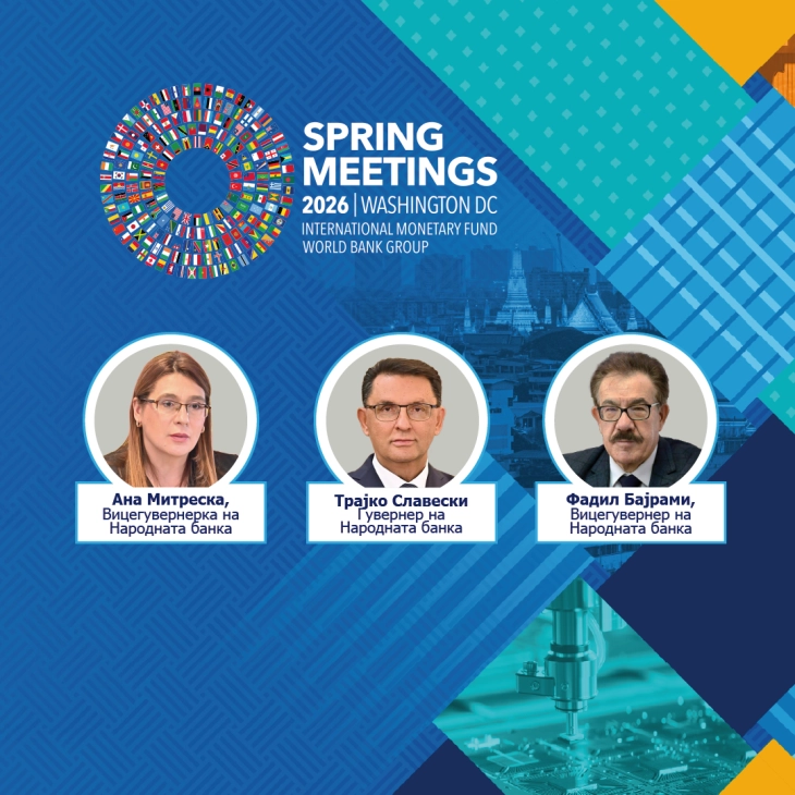 Како дел од делегацијата на Народната банка на овие средби ќе учествуваат и вицегувернерите Ана Митреска и Фадил Бајрами.