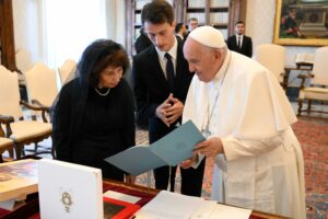 Претседателката Сиљановска Давкова и папата Франциско ги разгледале можностите за унапредување на институционалната соработка во областа на образованието, науката и културата и размениле мислења за тековните предизвици со кои се соочува католичката заедница во нашата држава.