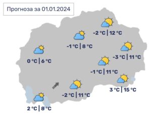 Во Скопје претпладне со врнежи од дожд, попладне сончево со мала до умерена облачност. Дневната температура ќе се движи од 5 до 15 Целзиусови степени.