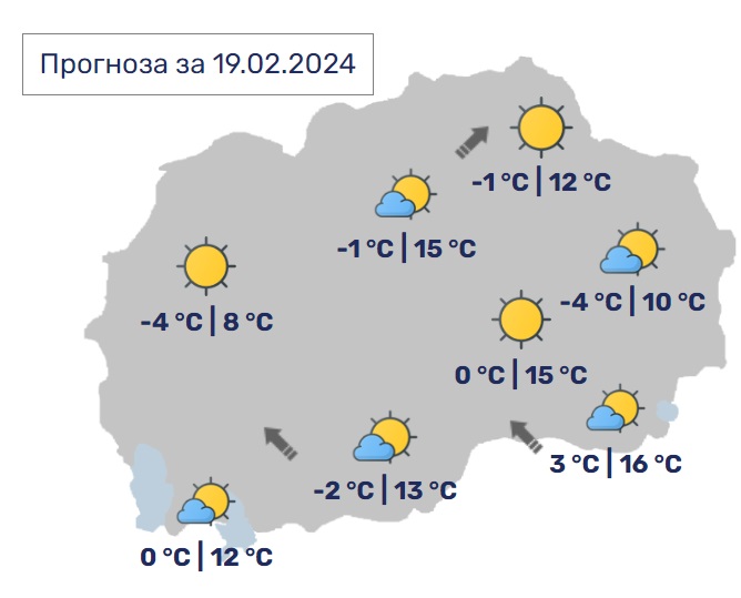 Во Скопје променливо облачно со сончеви периоди. Ќе дува слаб до умерен северен ветер. Дневните температури ќе се движат од 6 до 14 Целзиусови степени.
