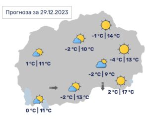 Во Скопје магливо и тивко. Минималната температура ќе се спушти до -2, а максималната ќе достигне 10 степени.