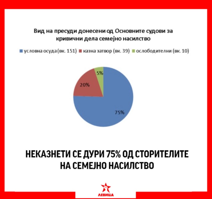 Игнорантскиот однос на надлежните институциите раководени од СДС-ДУИ е целосно неприфатлив. Левица е против ваквата тенденција на судовите за неосудување на сторителите и алармира на доследно изрекување и извршување на предвидените затворски казни како исклучително важен сегмент во делот на превенција и заштита на жртвата од повторна тортура и виктимизација“, соопшти партијата.