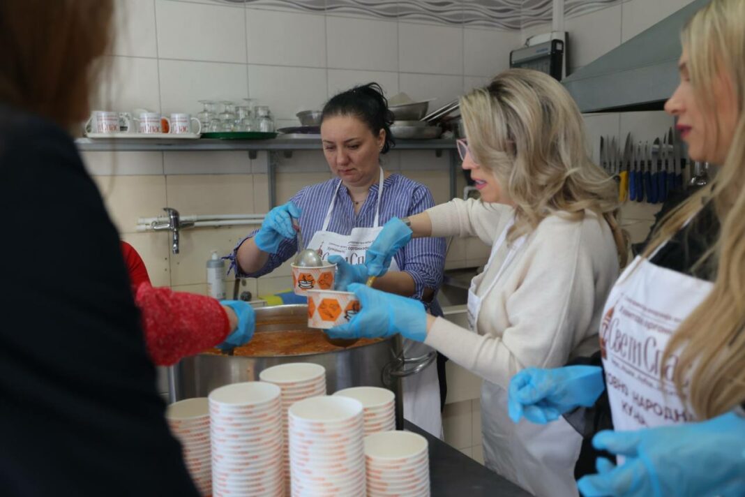 Мицкоска, заедно со другите волонтери од хуманитарната организација при Скопската православна епархија, учествуваше во готвењето и поделбата на храна за најранливите категории.
