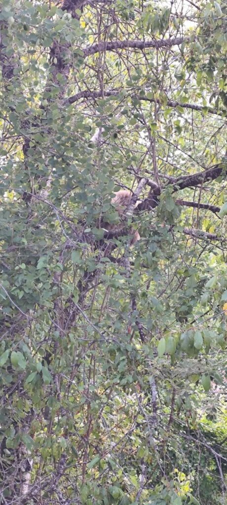 Утрово, по повик од Центарот за управување со кризи, ренџерите на Националниот парк Маврово спасиле заглавено мече на дрво во двор на викендица во Маврови Анови.