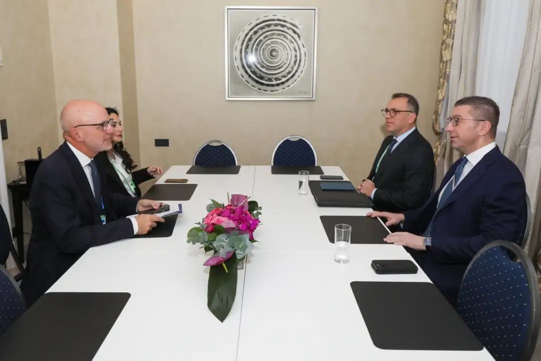 Мицкоски е придружуван од министрите за одбрана, Владо Мисајловски, за надворешна политика и надворешна трговија, Тимчо Муцунски, и за внатрешни работи, Панче Тошковски.