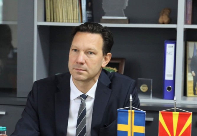 „Посветеноста на Шведска кон проширувањето на ЕУ секогаш била, и останува, цврста како карпа. Всушност, според анкетата на Евробарометар објавена во септември 2025 година, Шведска е ‘најпријателски настроена кон проширувањето’ од сите земји членки на ЕУ, со 79 отсто од испитаниците кои се изјасниле во корист на проширувањето. И јас лично силно се залагам за европската интеграција, соработката во рамки на ЕУ и процесот на проширување, па од таа перспектива, се надевам дека ќе има напредок за време на мојот мандат овде. Ќе продолжиме да стоиме зад Северна Македонија и сите земји-кандидатки кои сакаат да се приклучат кон Унијата и да ги исполнат Копенхашките критериуми. Членството во Унијата – верувам – би било од голем интерес не само за Северна Македонија, туку и за ЕУ, вклучително и за соседните земји, како и за подалечни земји членки, како што е Шведска. Затоа, се надевам дека ќе има напредок во наредните години. Мојот впечаток од разговорите овде во Скопје е дека тоа е и она што го сакаат повеќето луѓе, особено младите. За да ја поддржиме оваа посветеност, ќе продолжиме и со нашата силна билатерална поддршка за реформските напори на Северна Македонија поврзани со ЕУ. Всушност, главната цел на шведската реформска соработка со Северна Македонија е токму тоа – да ѝ помогне на земјата во нејзиниот процес на интеграција и пристапување во ЕУ преку финансиска и техничка поддршка на институциите за исполнување на Копенхашките критериуми. Голем дел од оваа поддршка оди во Министерството за европски прашања за поддршка на реформите низ целата Влада, со посебен фокус на кластерот за фундаментални прашања и борбата против корупцијата, но нашата програма ја поддржува и важната работа на локалните организации, граѓанското општество и независните медиуми – сè со цел за интеграција во ЕУ и исполнување на Копенхашките критериуми“.