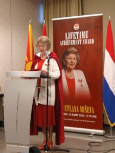 Светлана Мишева имаше чест да ја облече „наметката на македонското достоинство“ и стана почесен претседател на Македонската заедница во Холандија.