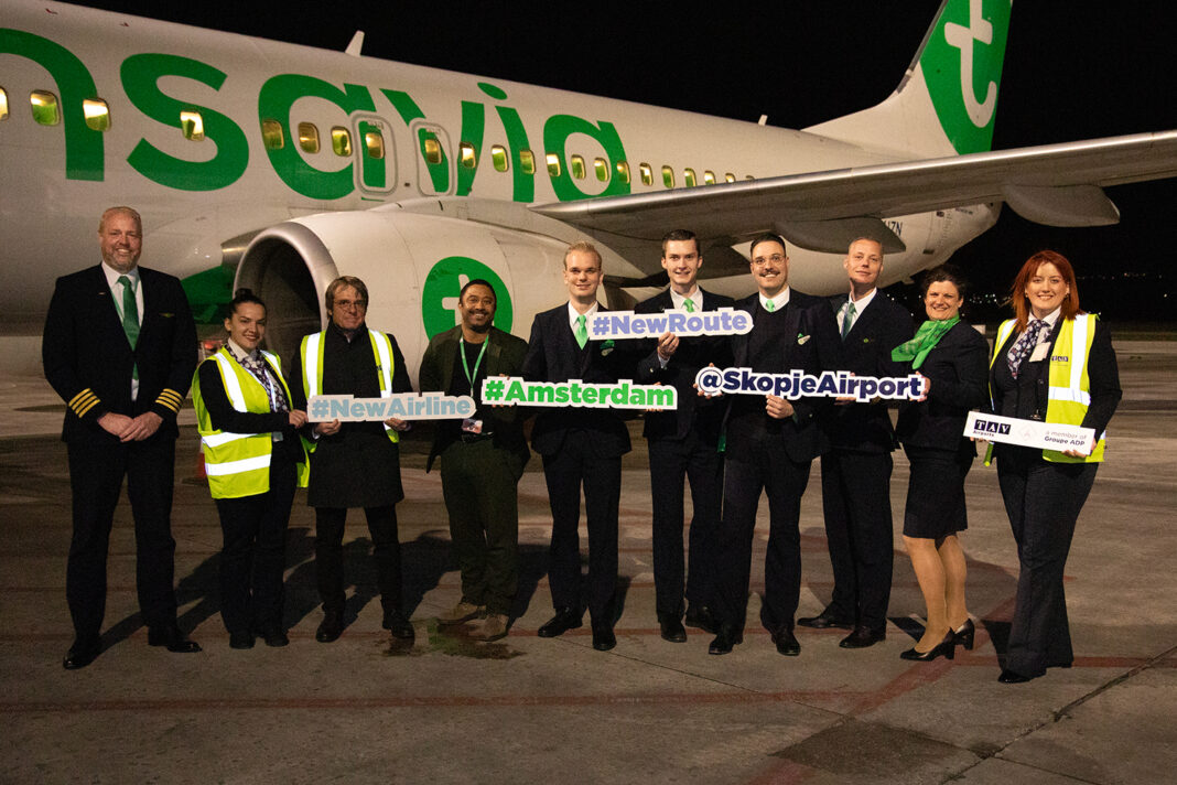 ТАВ Македонија, подружница на ТАВ аеродроми, членка на групацијата АДП, синоќа во 21 часот го пречека првиот лет на холанската авиокомпанија Трансавиа, на Меѓународниот аеродром Скопје, со што се означи воведувањето на новата авиолинија Амстердам-Скопје-Амстердам.
