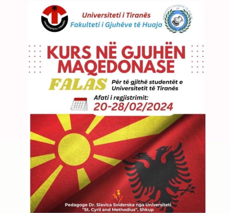 „Во рамки на соработката на Факултетот за странски јазици при Универзитетот во Тирана со Универзитетот „Свети Кирил и Методиј“ од Скопје, Северна Македонија ве информираме дека во тек е уписот за македонски јазик, како вон наставен предмет“, пишува во објавата на факултетот.