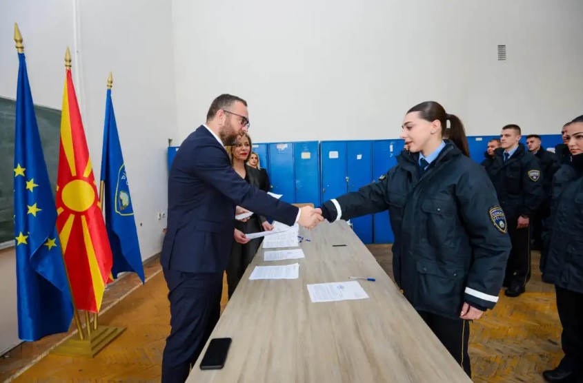 Тошковски денеска беше во денеска бил во посета на СВР Скопје каде им врачи решенија на новите полициски службеници кои досега беа приправници и се распоредени во рамките на најголемиот сектор за внатрешни работи – Скопје.