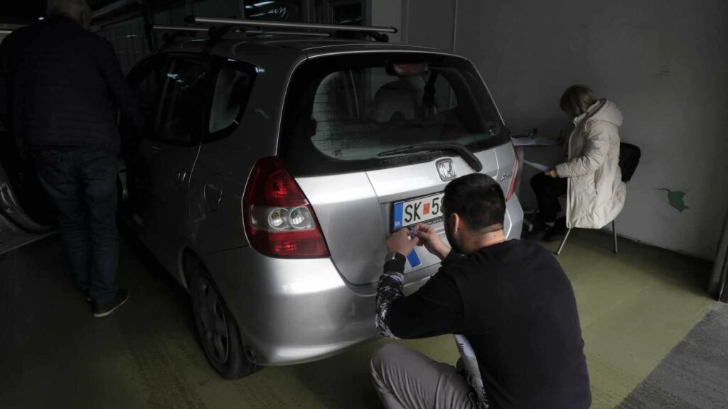 Налепниците со ознаката НМК во станиците за технички преглед пристигнаа само 12 часа пред да стапат во сила обврските од Преспанскиот договор, што е вечерва на полноќ.