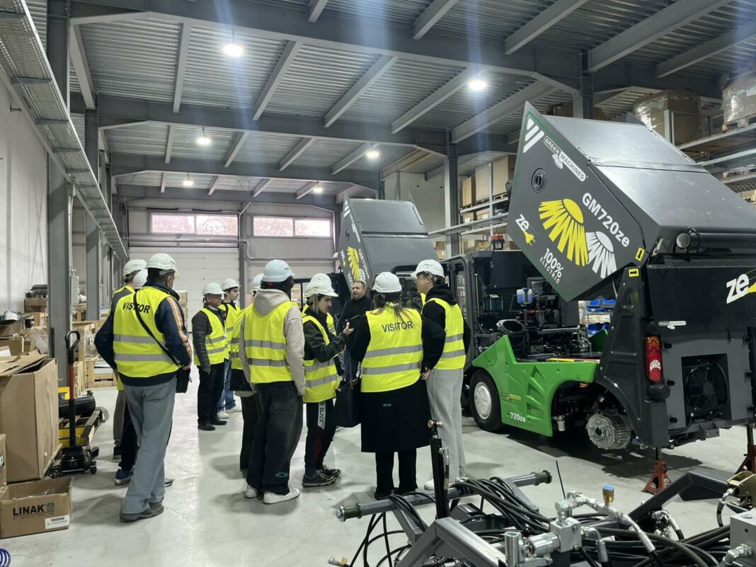 За време на посетата тие го разгледаа процесот на производство на возилата за урбано чистење од брендот Грин машинс (Green Machines), каде се произведуваат возила на водороден, електричен и касичен погон, како и секторот за тешки метални конструкции. Посебен интерес кај учениците предизвикаа монтирањето на возилата и роботизираните системи за заварување.