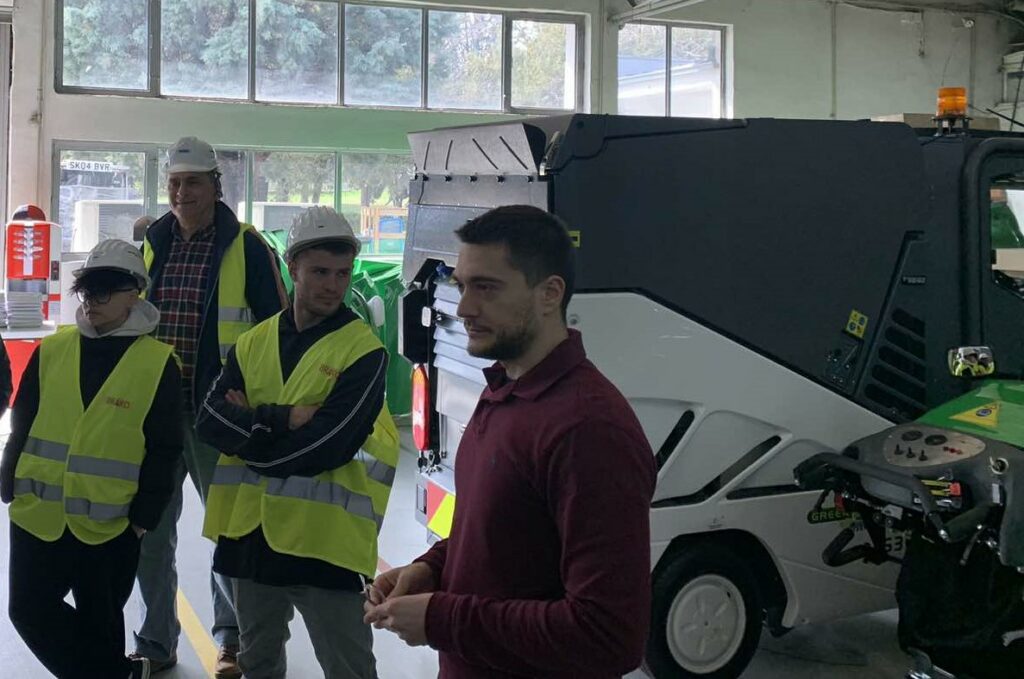 За време на посетата, Ангел Анѓушев, оперативен директор на фабриката за возила Грин машинс во рамките на Брако и директорот за производство во Грин машинс, Иле Атанасов ги запознаа учениците со целокупниот процес на производството на најсовремените возила за одржување на хигиена во урбани средини, кои се македонски бренд кој се продава низ целиот свет.
